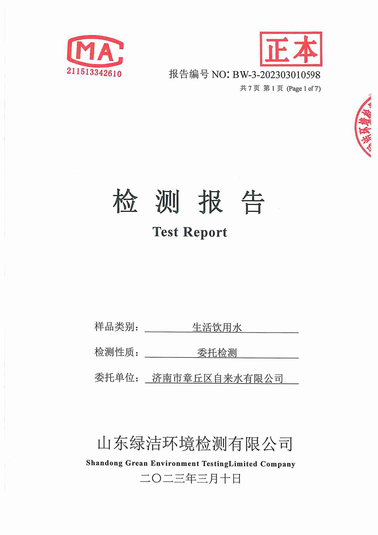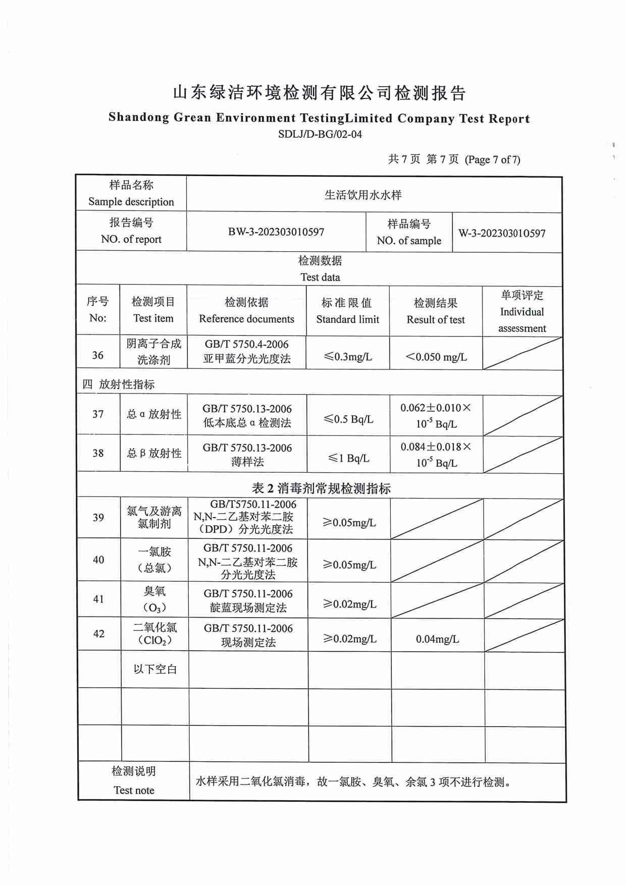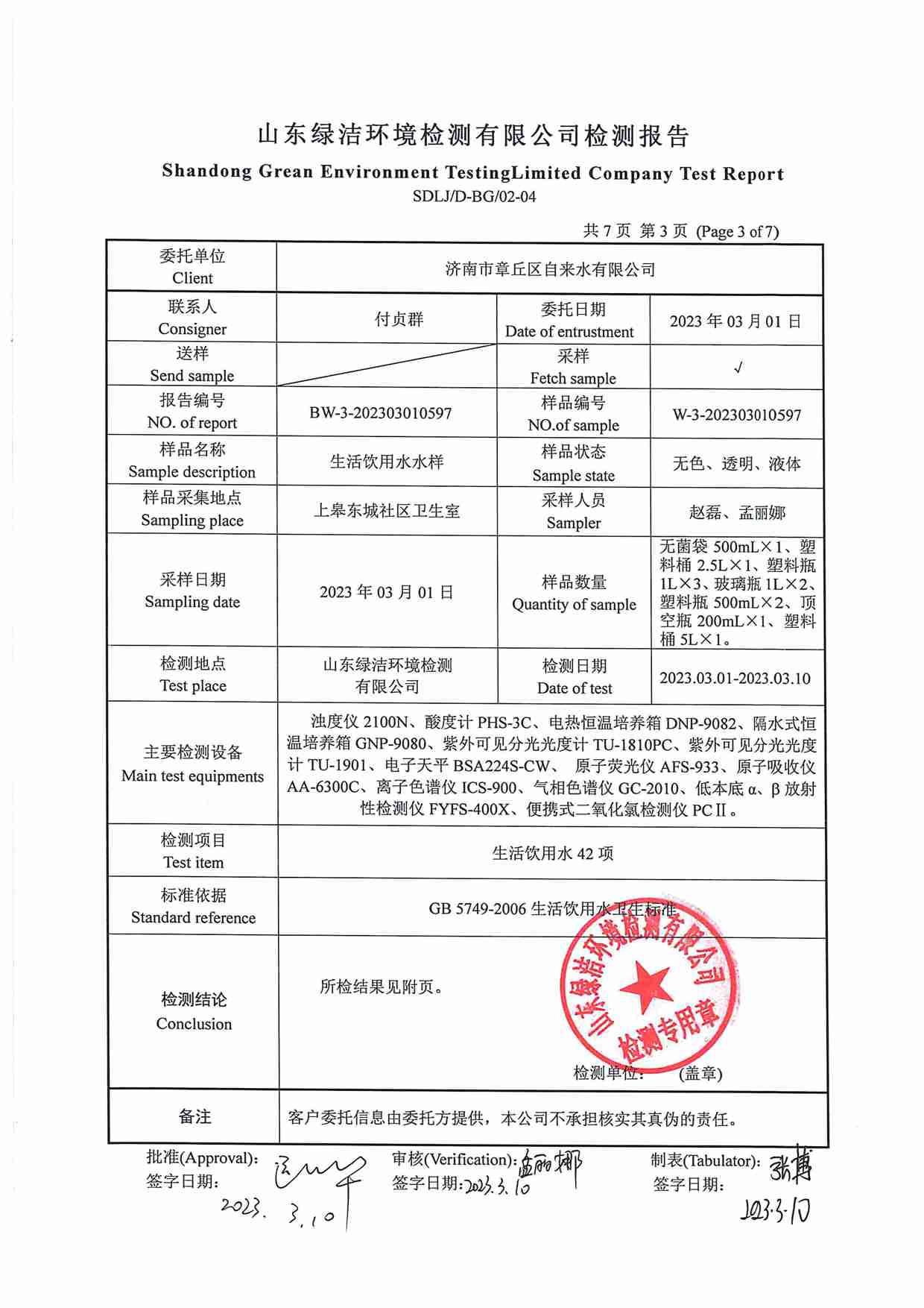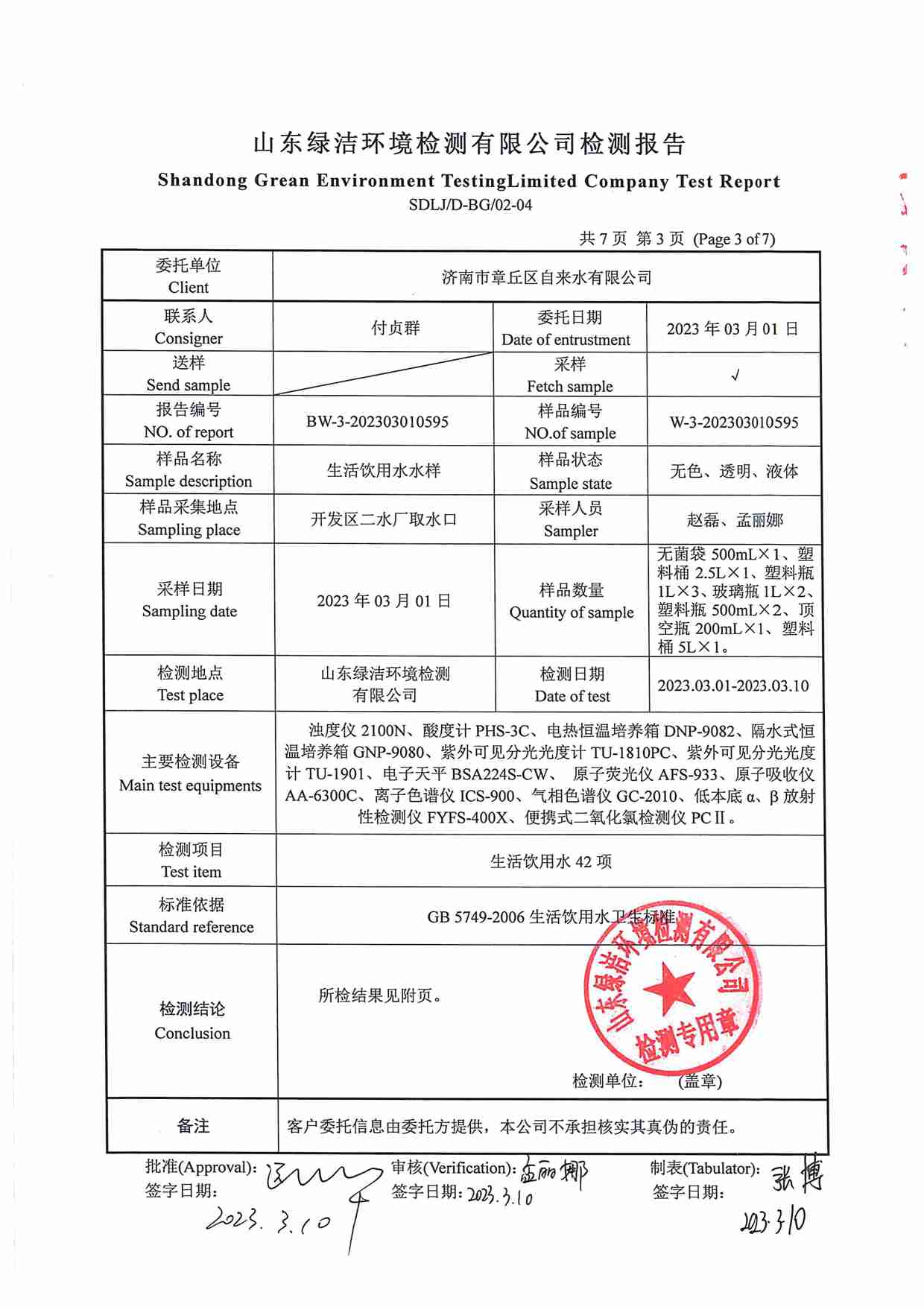 2023年03月水質(zhì)報(bào)告