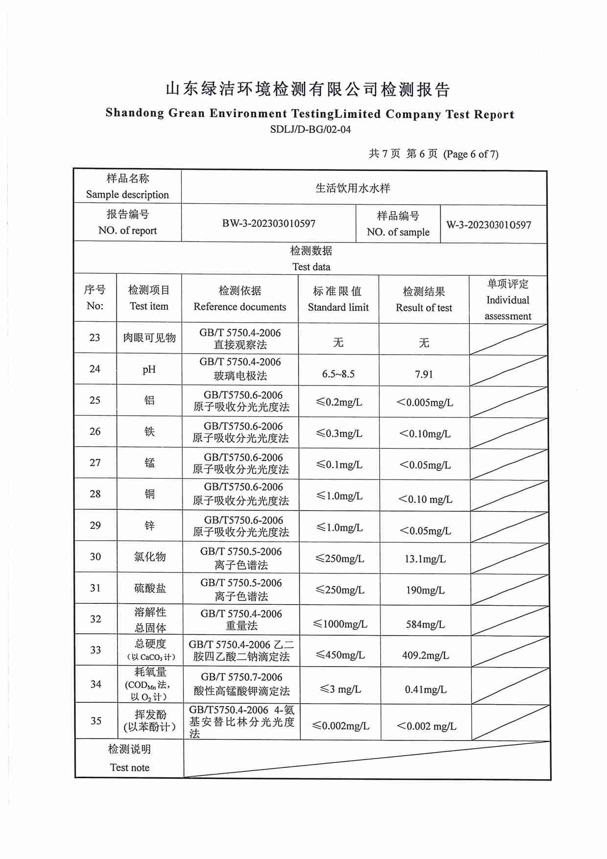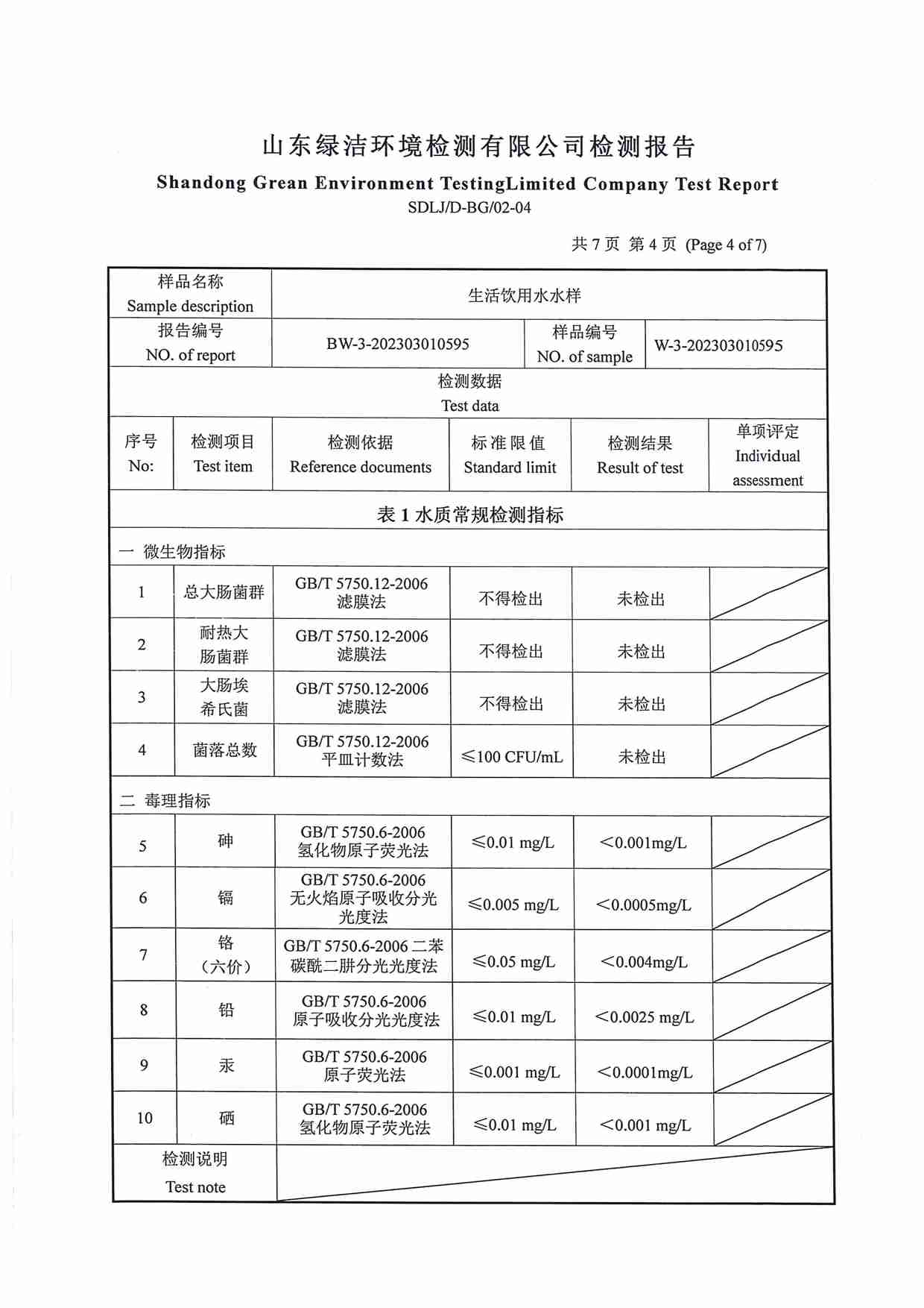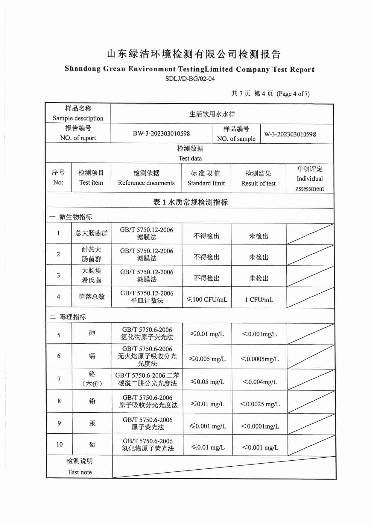 2023年04月水質(zhì)報(bào)告