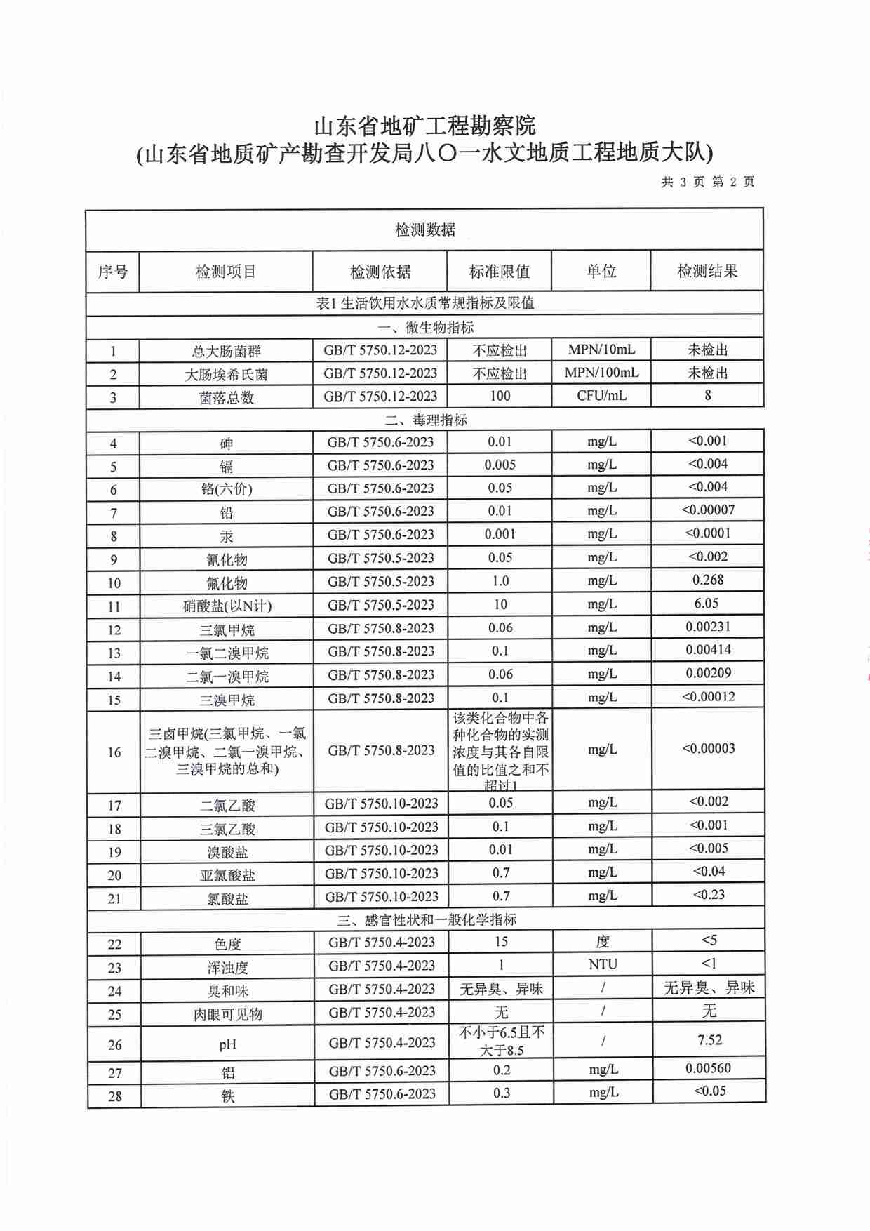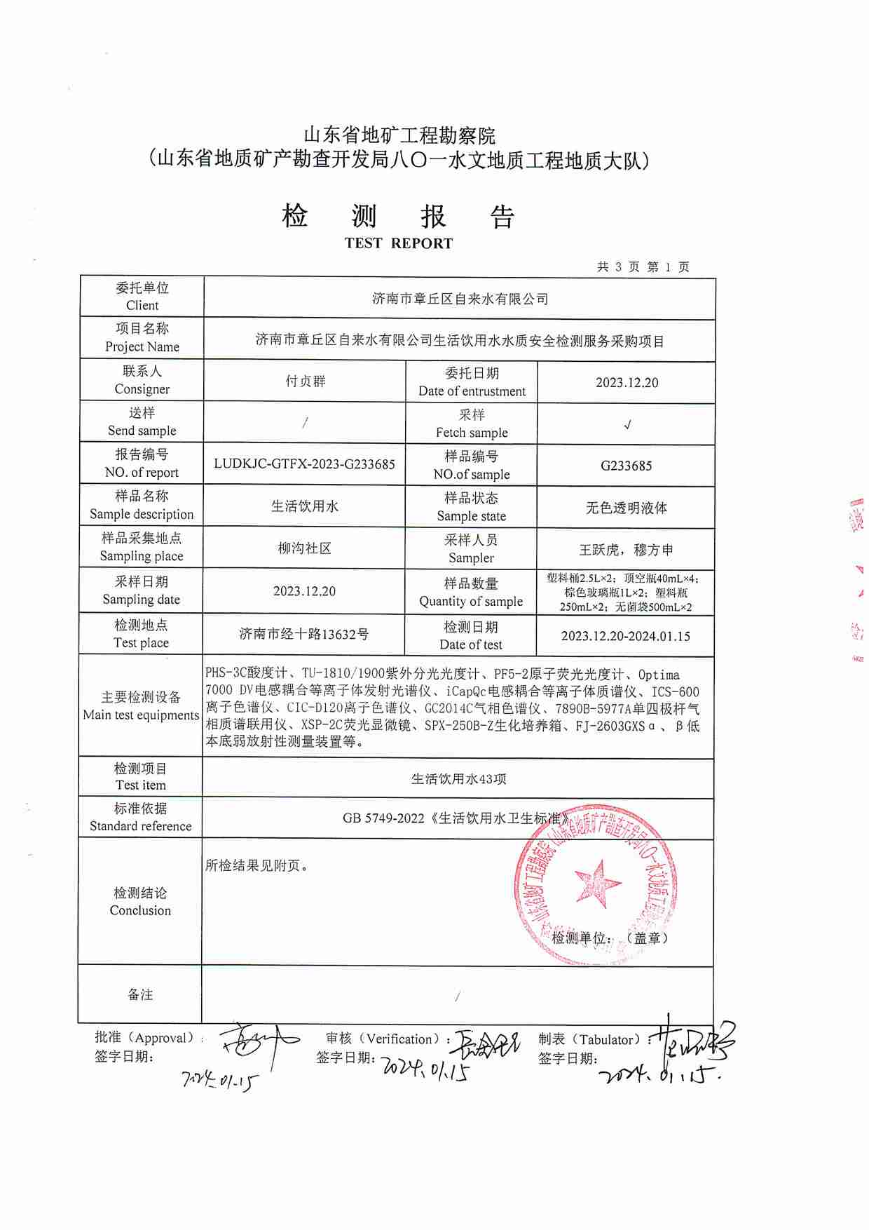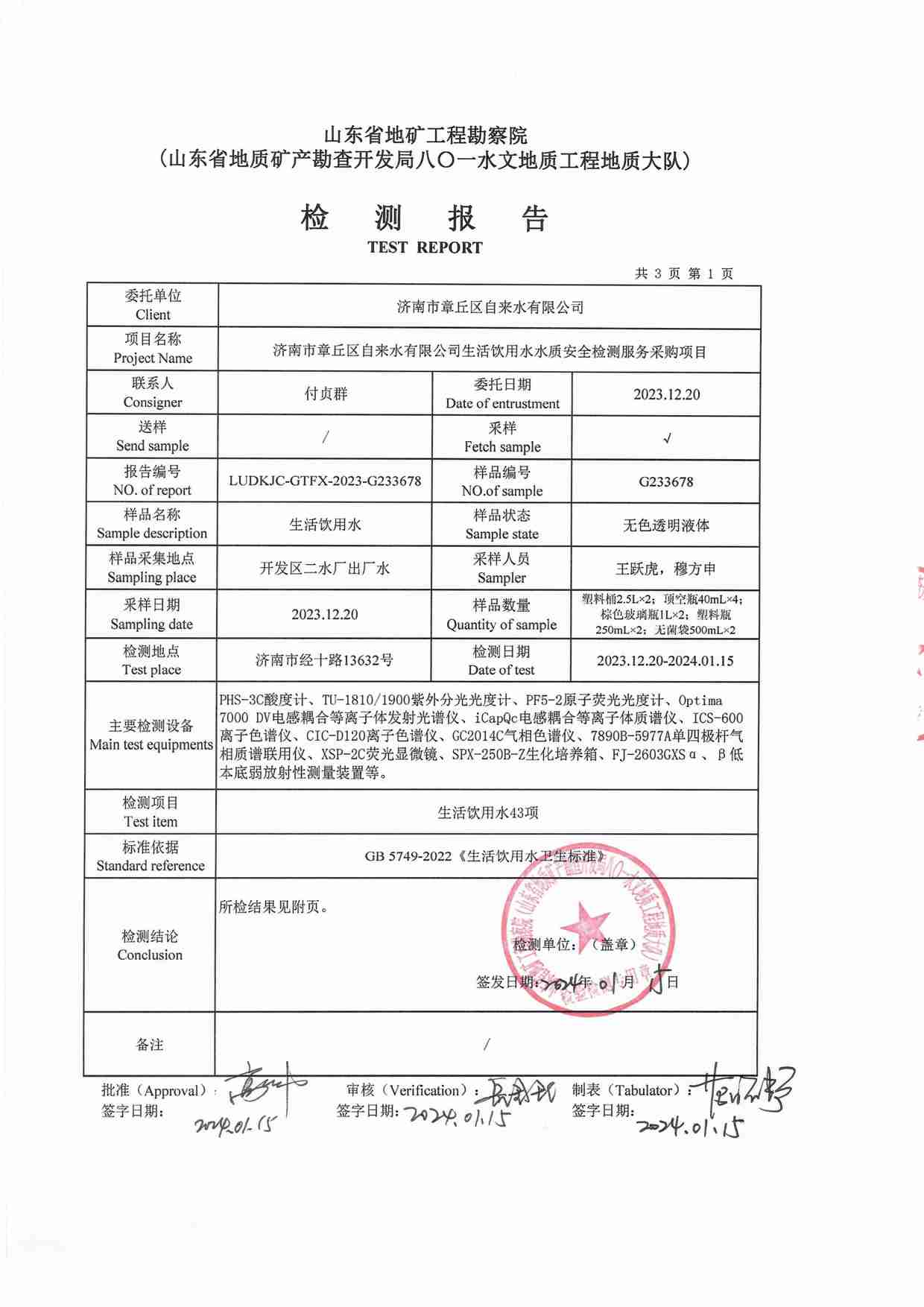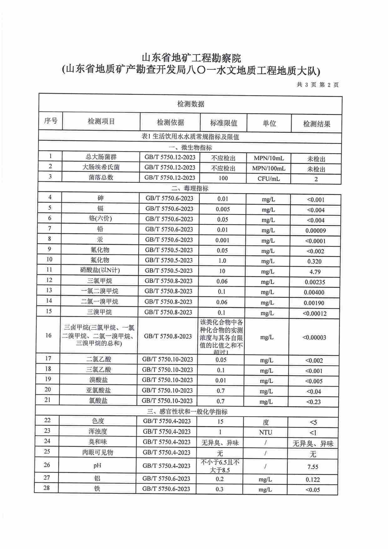 2023年12月水質(zhì)報(bào)告