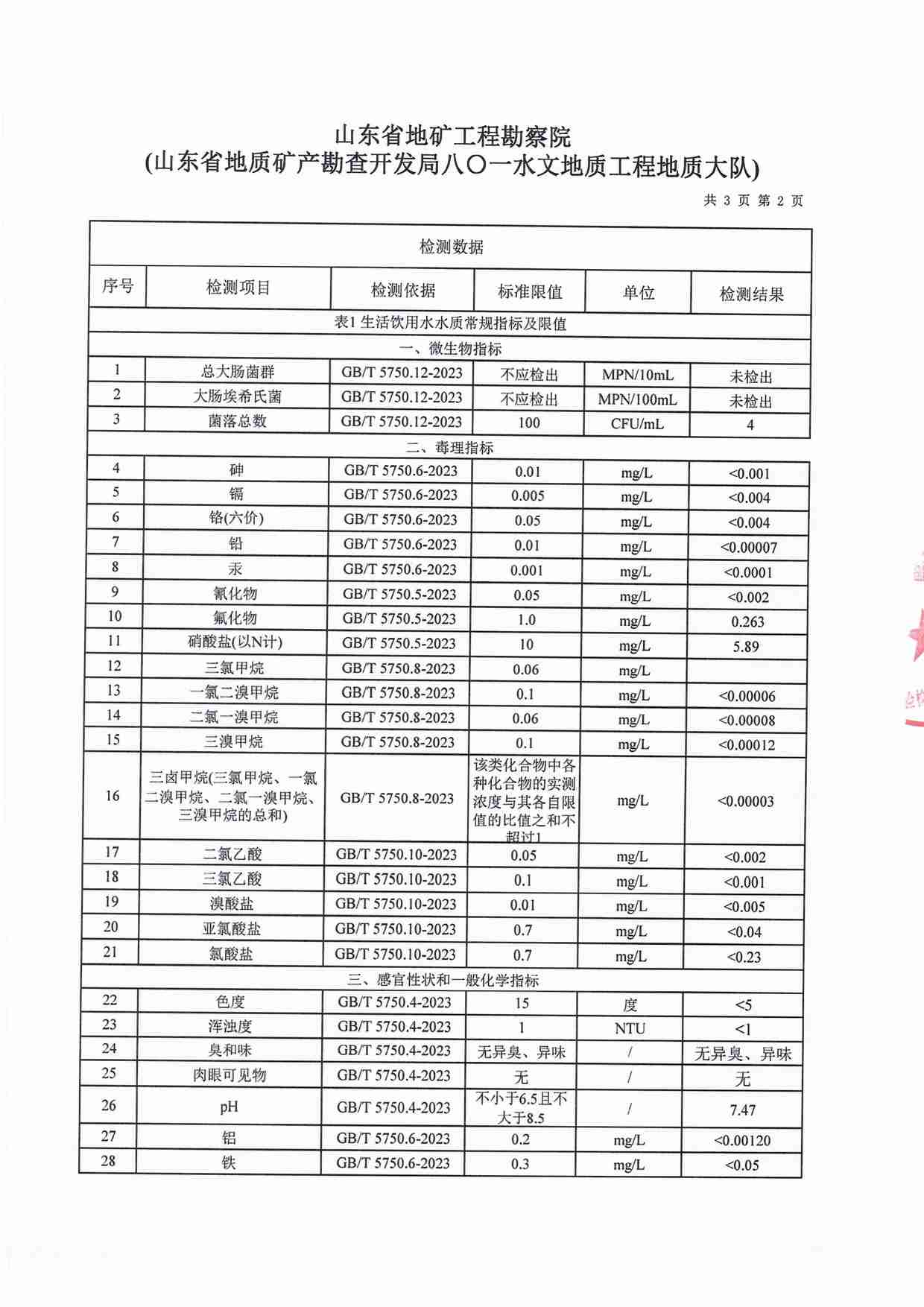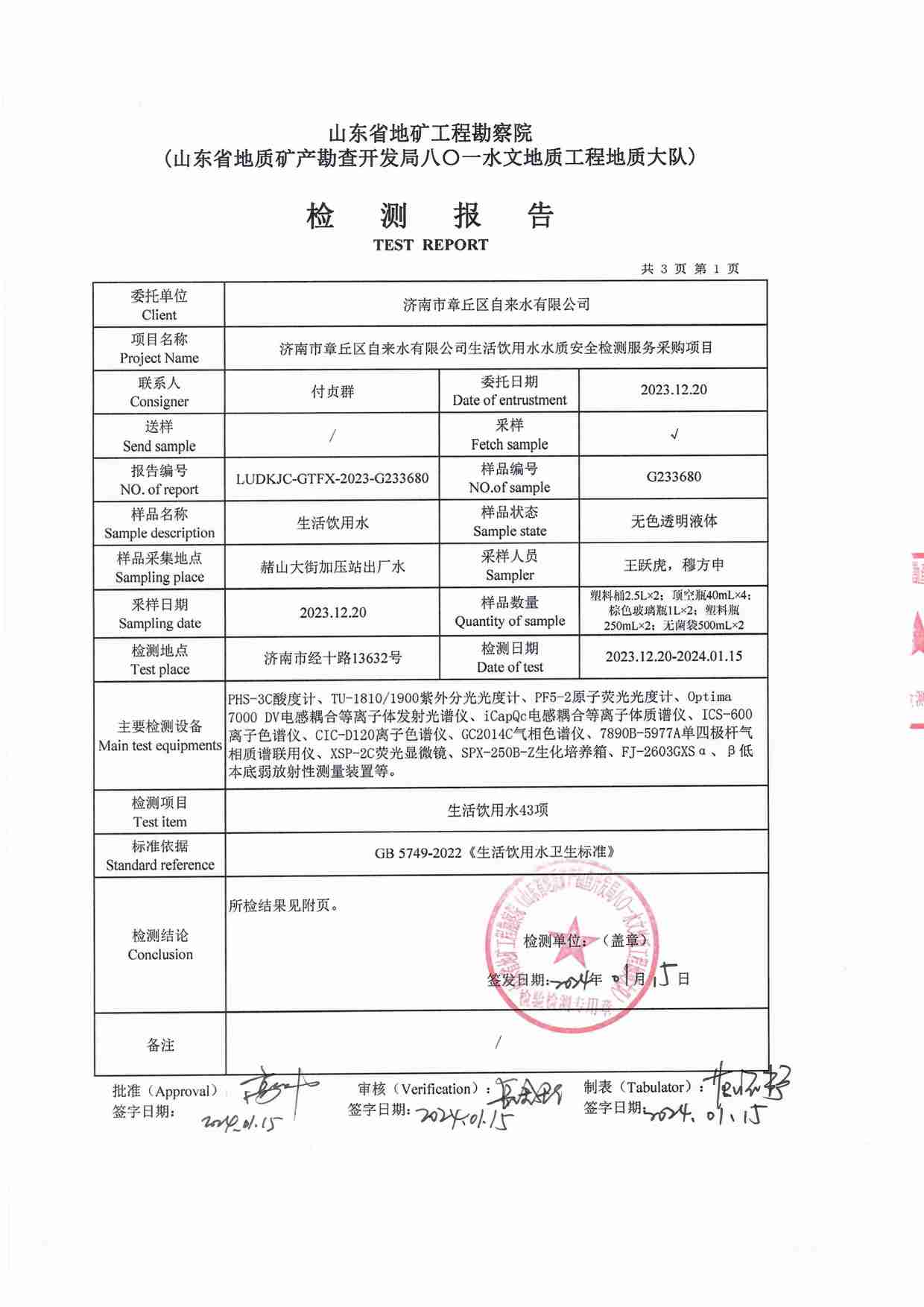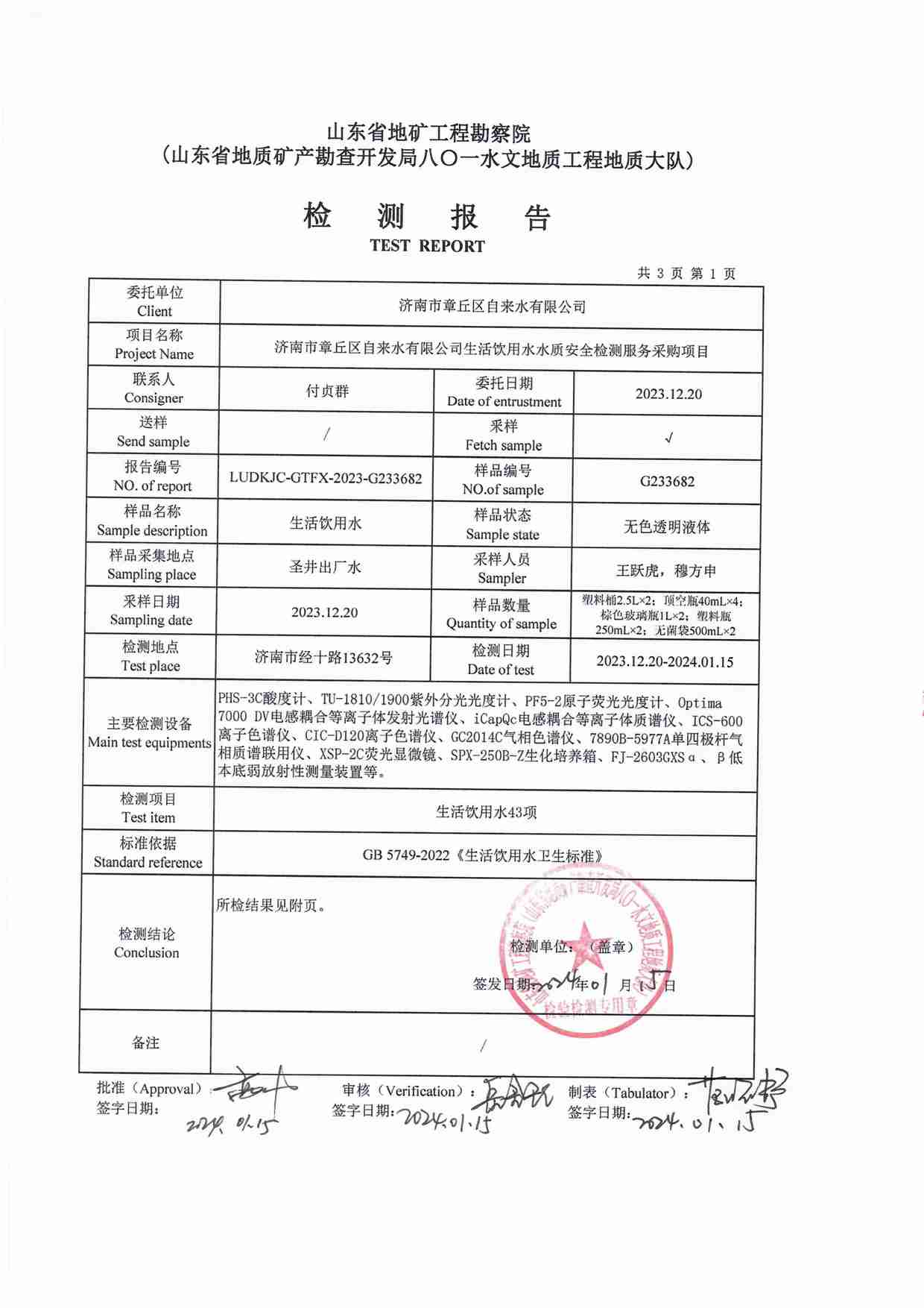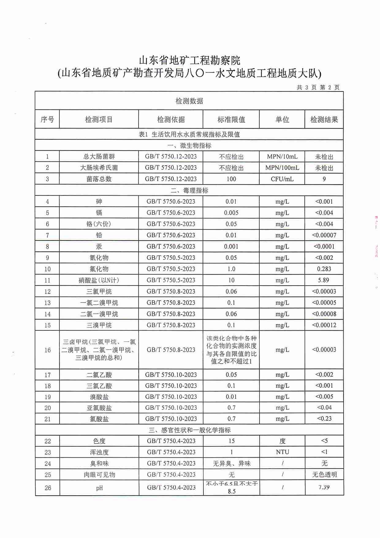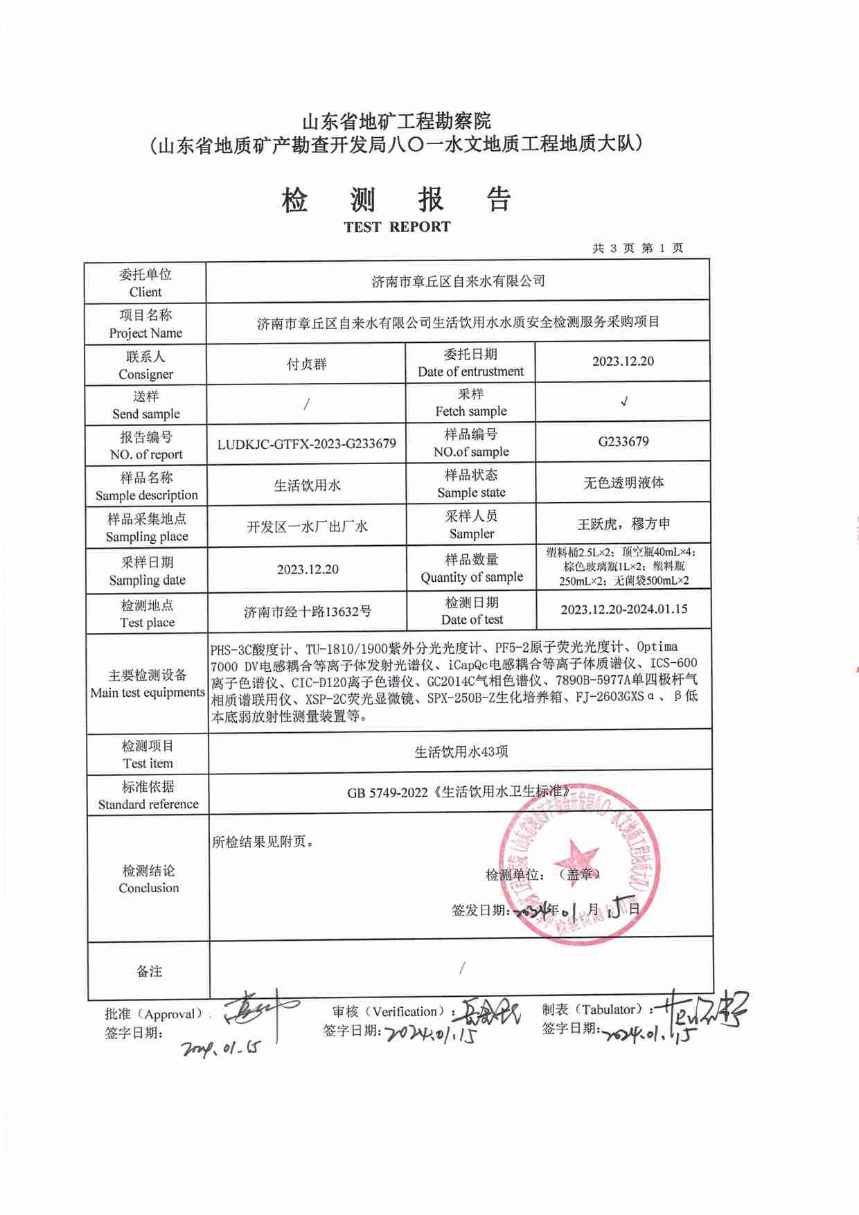 2023年12月水質(zhì)報(bào)告
