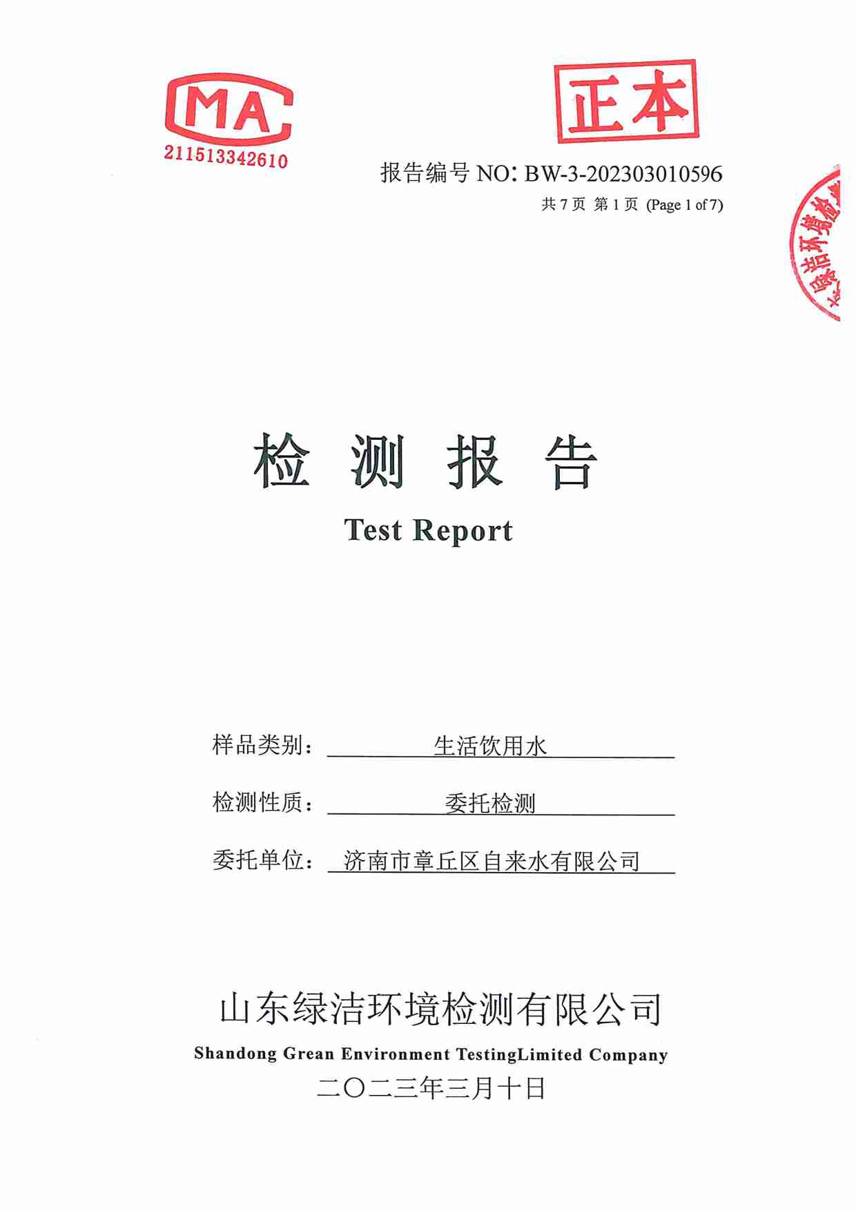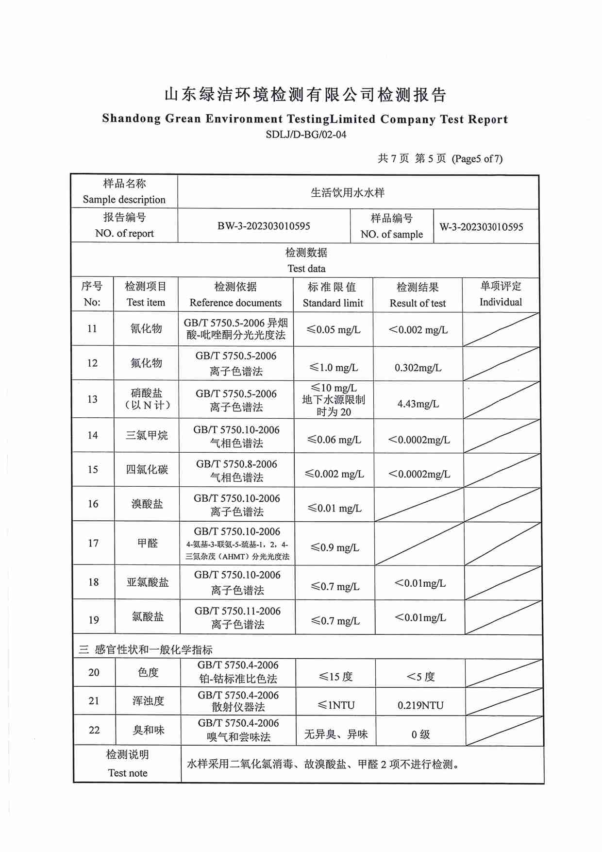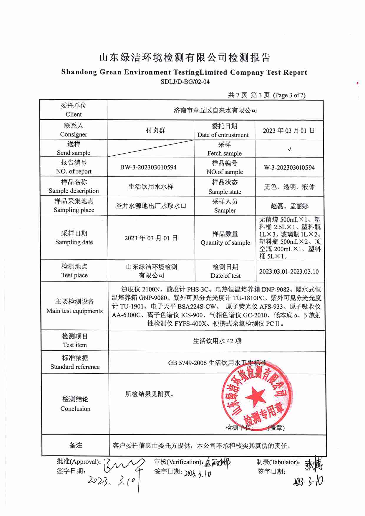 2023年03月水質(zhì)報(bào)告