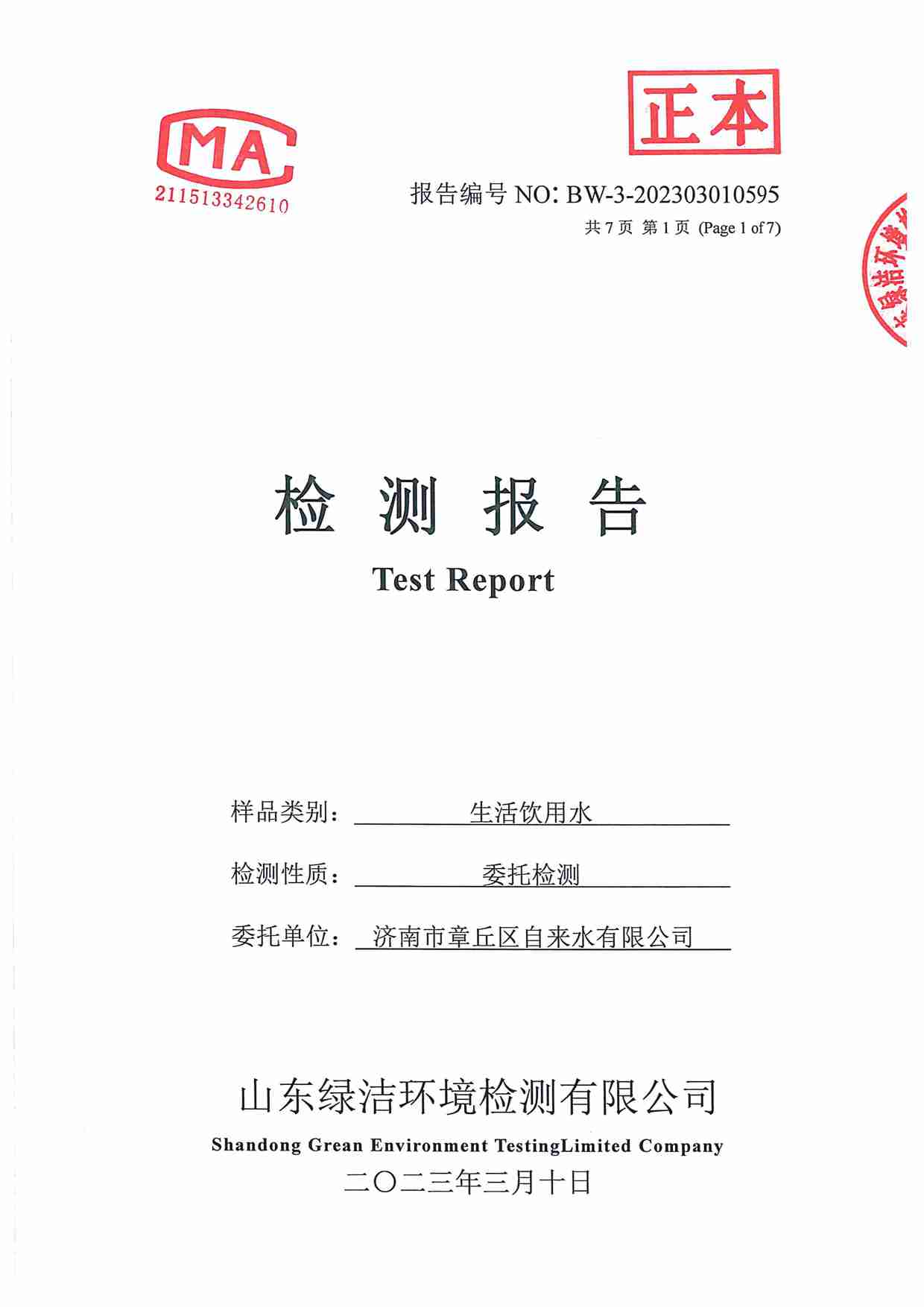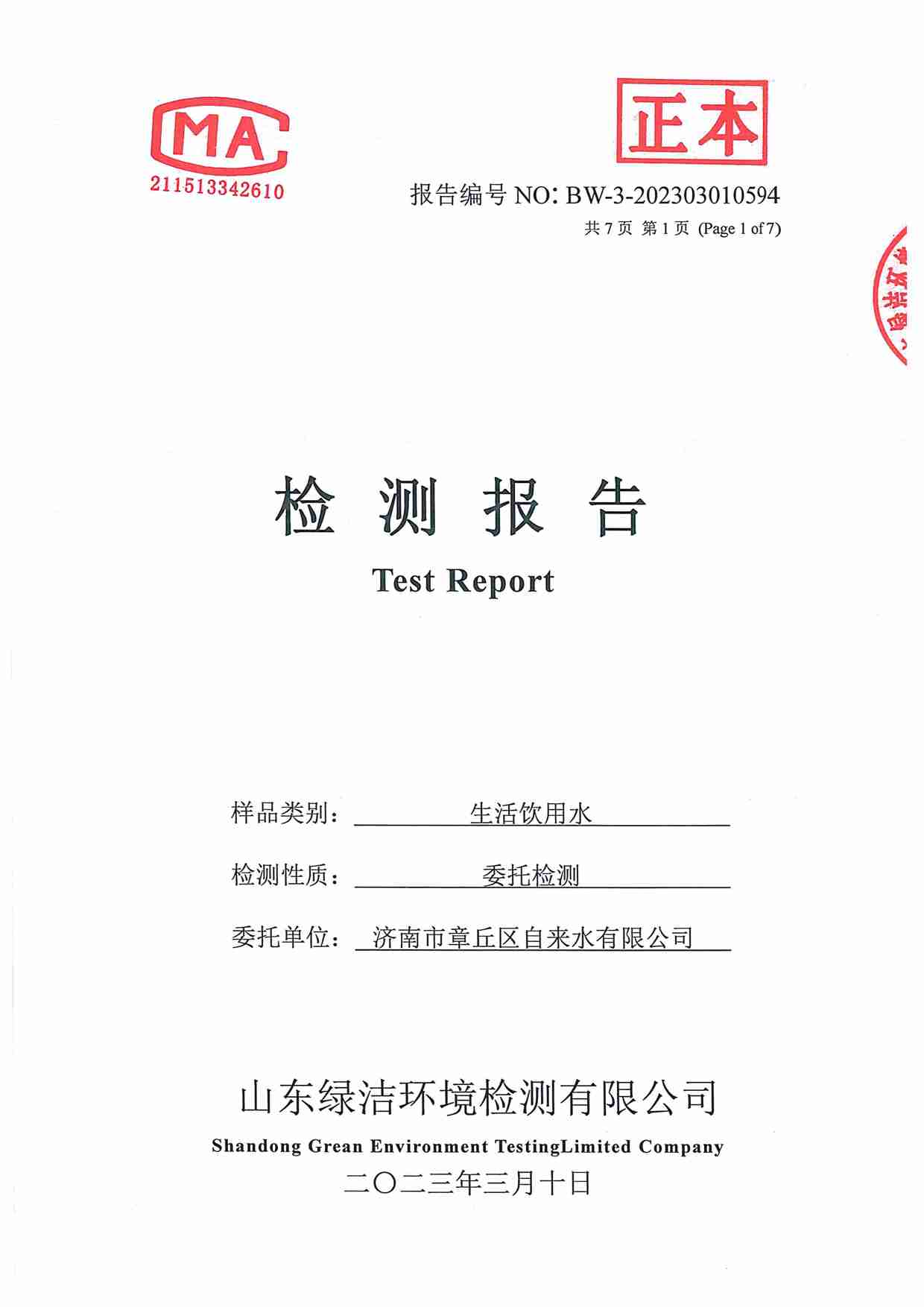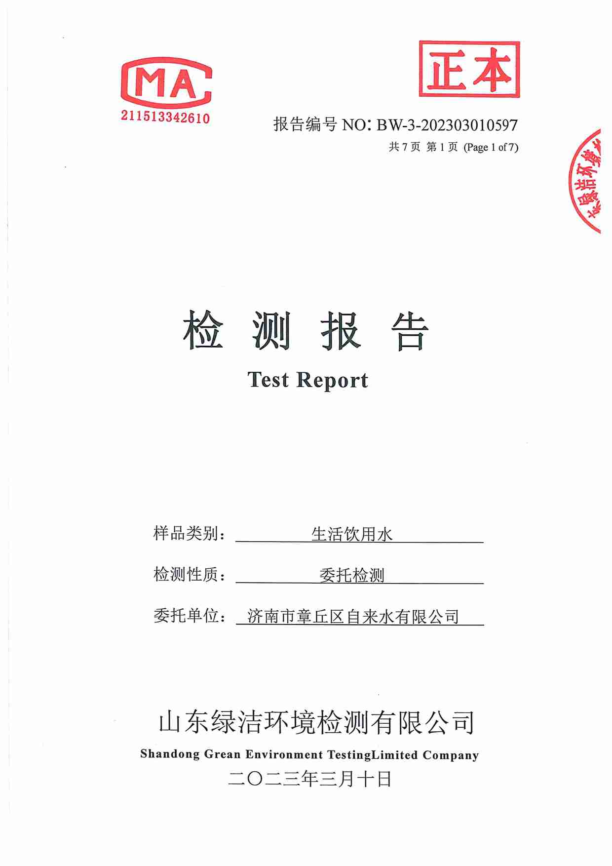 2023年03月水質(zhì)報(bào)告